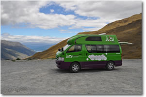 Our exploration of lakes (and invasion of sandflies) continued in Mavora and Manapouri (both Lord of the Rings filming locations) and in the beautiful village of Wanaka, where we braved the cold and took a dip in its crystal clear waters. We found a fantastic conservation campsite at Boundary Creek, on Wanaka's northern shores and enjoyed a twilight supper surrounded by superb mountain ranges, dense beech trees and the calm, peaceful waters of the lake. The Condo handled well on dirt and gravel road, making access to campsites like this a breeze.