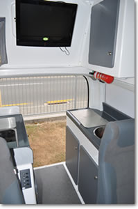 The Jucy Condo itself was incredibly decked out and boasted 2 double beds, a kitchen sink, a 2 burner stove top, an impressive fridge and plenty of cupboard and storage space. A large flat screen TV and DVD player provided onboard entertainment and the fold-out table extending out the back was perfect for meal preparation.